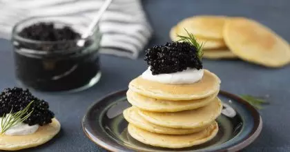 - Allow blinis to cool slightly. Spoon a dollop of crème fraiche onto each blini. Top with a small spoonful of Caviart® and sprig of dill.