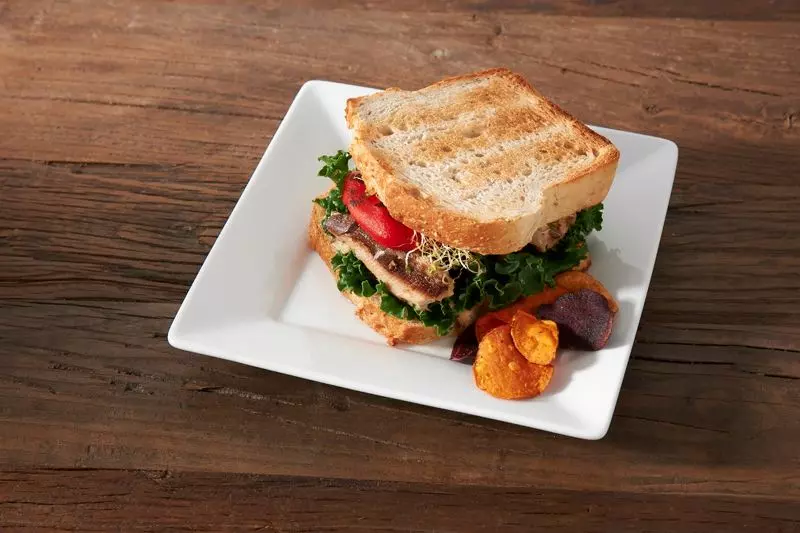 - From bottom to top, add to the bread the kale leaf then 3 sardine pieces then pimiento pepper and finally the sprouts.
