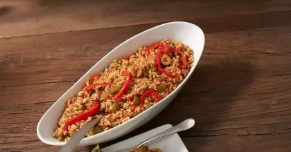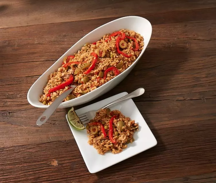 - Add peppers, canned tomatoes, cilantro, olives, peas and sardines. Sauté another 2 to 3 minutes.