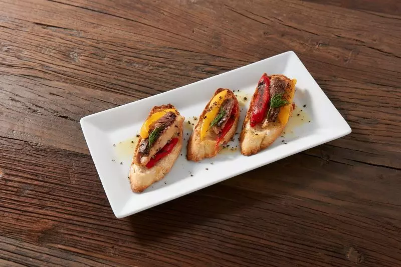 - Gently lay the sardine on top and garnish with small dill sprig.