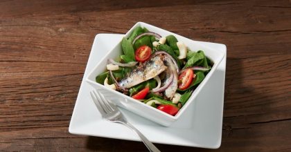 To serve, heat tortillas on the stovetop over a burner or on a saute pan until soft and pliable. Top with the sardines, caramelized onions, salsa, and cilantro. Finish with a squeeze of lime juice and enjoy!