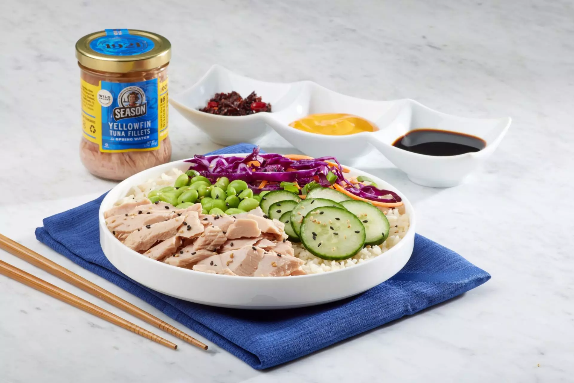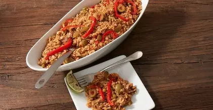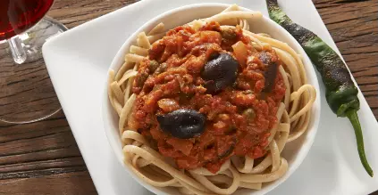 Mackerel Farro Salad with Pine Nuts, Golden Raisins, and Olives